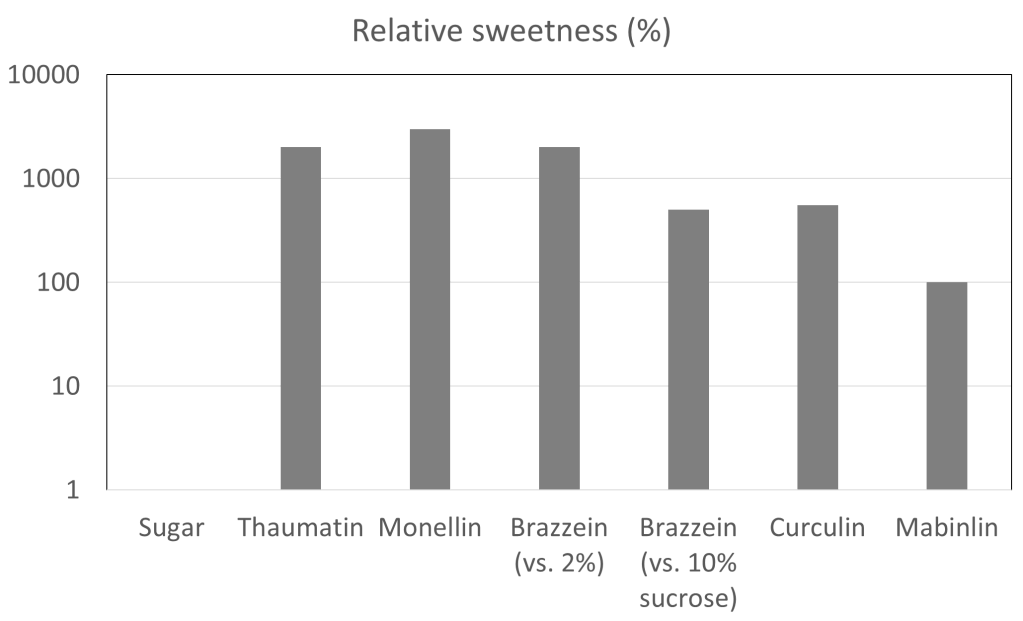 Natural sweeteners are not a novelty and many plants provide a sweet natural taste that is not necessarily coming from the sugar content or sugar molecules. Stevia is well known but is not a protein-based sweetener, from a biochemical point of view. Sweet proteins are naturally present in plants and have been explored by scientists as possible replacements for artificial low-calorie sweeteners (see this article). They can indeed trigger our sweet taste buds. The sweetest protein known is thaumatin and it has recently been modified to become HYPERSWEET (here is the link to the scientific article). Fun fact, a single point mutation (modification), a single amino acid change, was sufficient to boost its interaction with our sweet taste receptors and thus its sweetness.