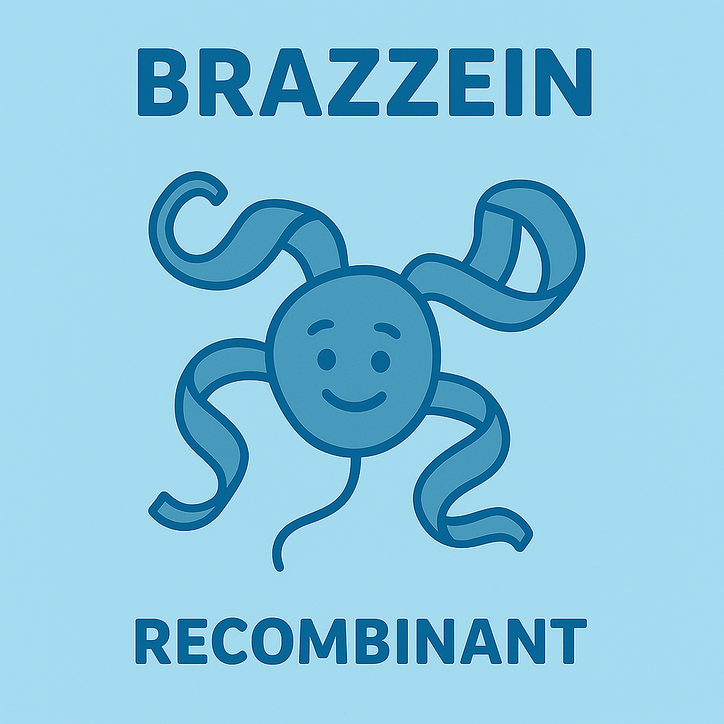 Product 1 – Brazzein (53 aa), produced through precision fermentation of yeast Pichia cells, purified and freeze-dried for formulation R&D use.